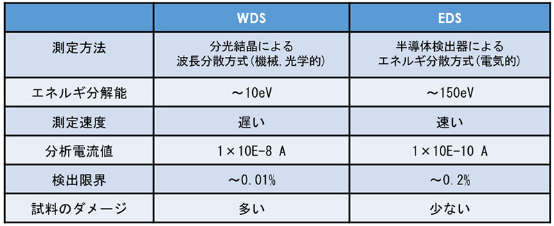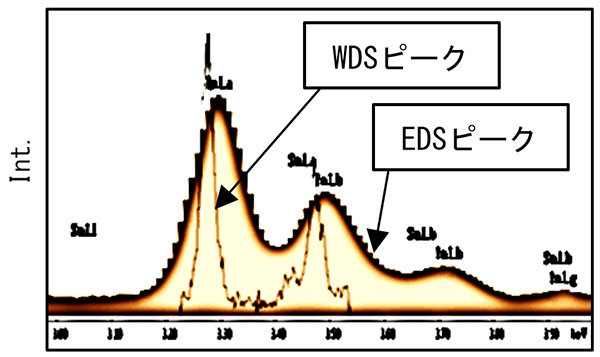 EDSは検出感度が高く全元素一斉分析が可能ですがエネルギ分解能が低く元素の区別が困難な場合があります。