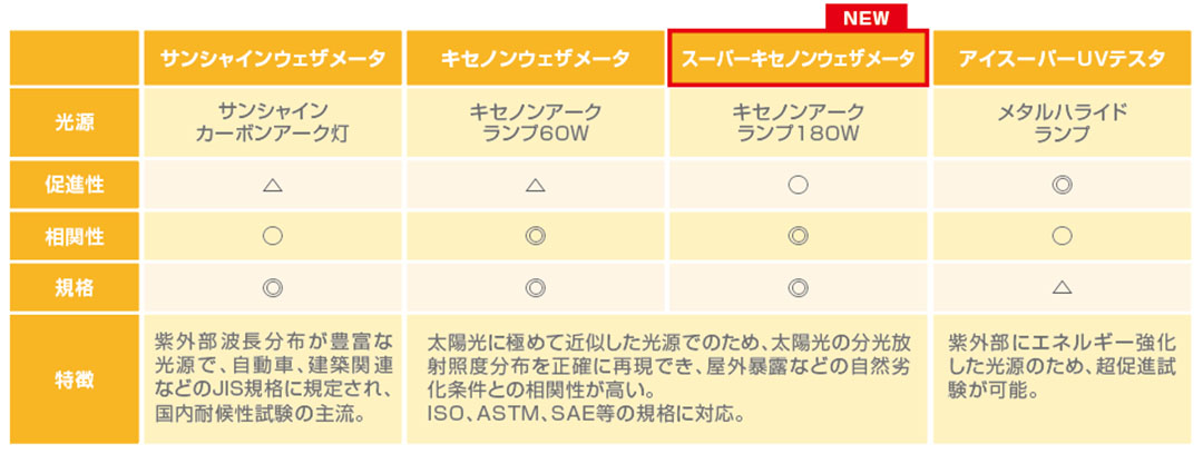 新)スーパーキセノンウェザメータ: 180W 放射照度3倍!