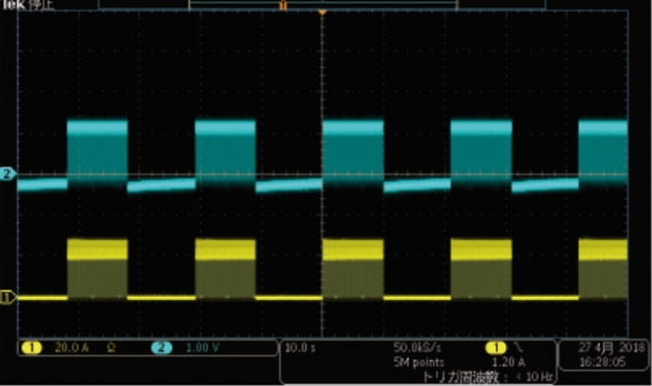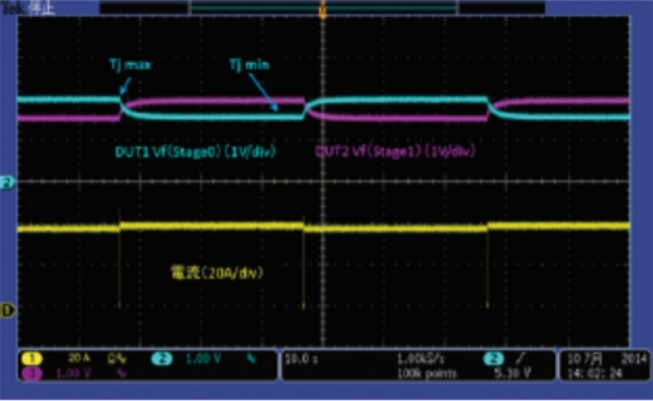 電流をパルス状にして通電させたパワーサイクル試験です。